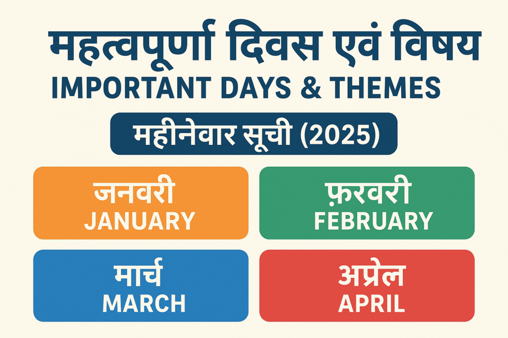 महत्वपूर्ण दिवस एवं विषय – महीने वार सूची (2025)